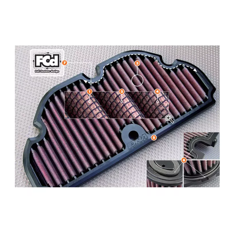 7/ FCd (Full Contour design) - най-малко 20% и до 80% повече площ на филтриране, използвайки DNA FCd технология; Уникален революционен дизайн, иновация от DNA, позволява на нагънатата филтрираща среда да следва точно контура на въздушната кутия, независимо от сложността на формата, като увеличава сериозно въздушния поток. Възползвайки се от пълнaта площ по контура на въздушната кутия, са премахнати „мъртвите точки“, които ограбват мощността. Ако площта е там, защо да не бъде ефективно използвана!