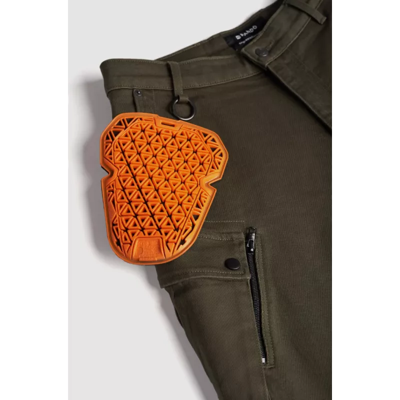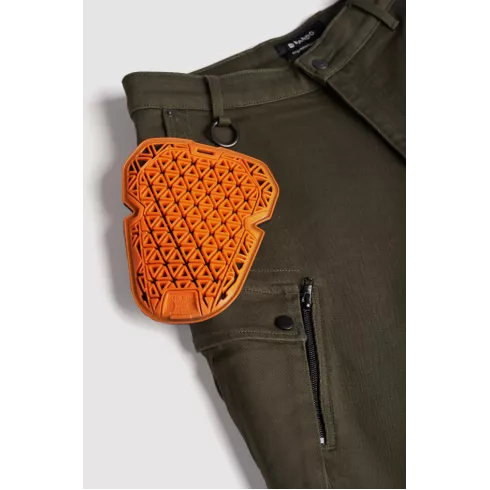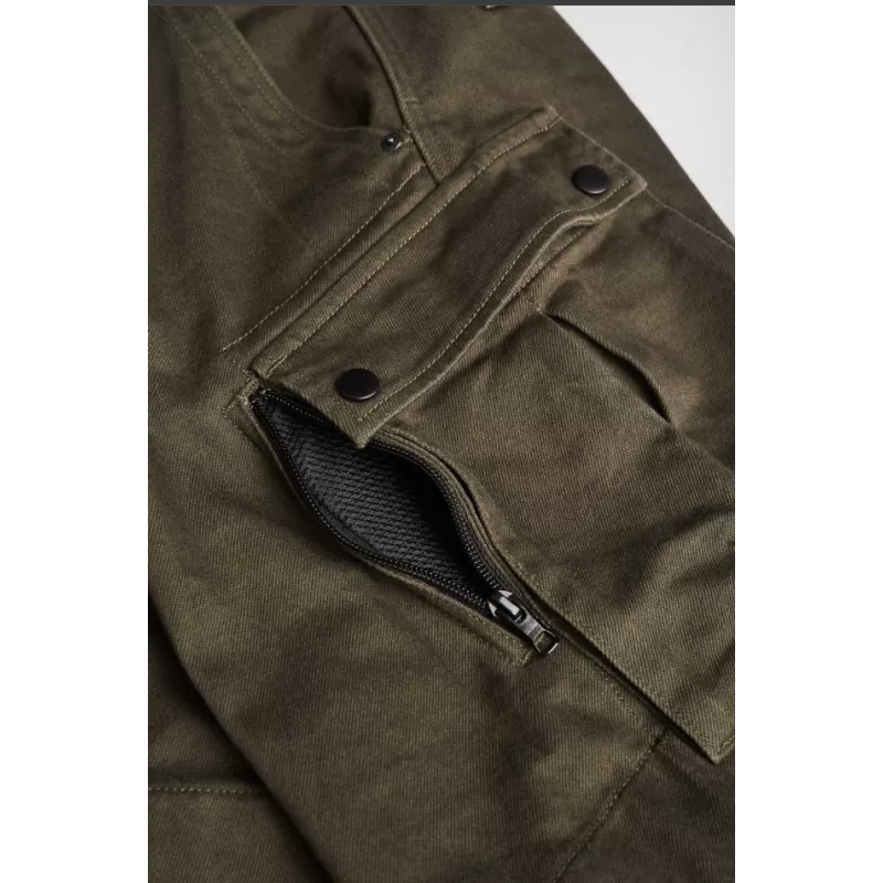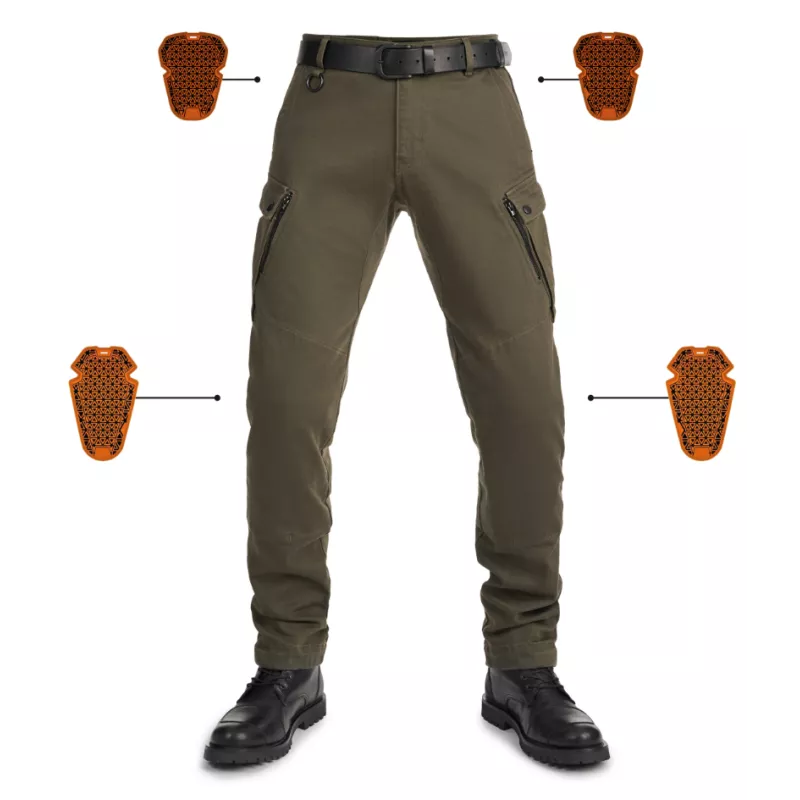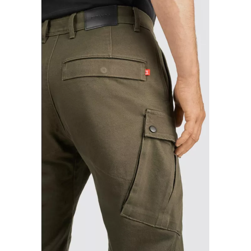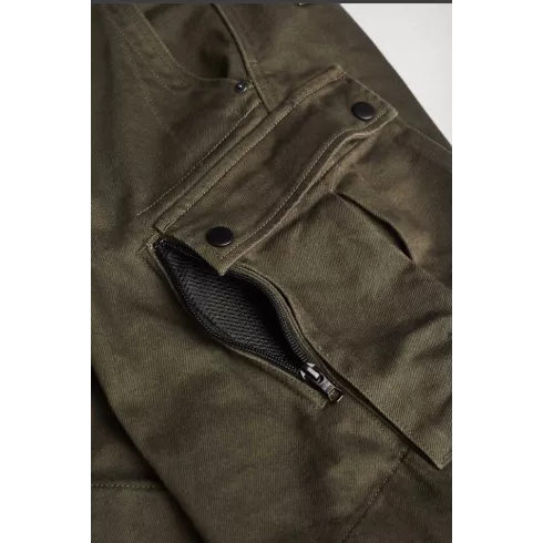Σχεδιασμένο σύμφωνα με τις βασικές αρχές της Pando Moto για ασφάλεια, λειτουργικότητα και στυλ, το παντελόνι cargo Mark Olive AAA είναι ένα σετ εξοπλισμού υψηλής προστασίας για ιππασία με στρατιωτική αίσθηση. Κατασκευασμένο από denim Cordura με τεχνολογία Coolmax, είναι σχεδιασμένο για τον σύγχρονο λάτρη της περιπέτειας.