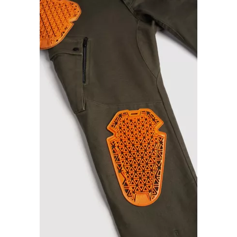 • Οι τσέπες θωράκισης γονάτων (ρυθμιζόμενες σε δύο επίπεδα) διαθέτουν θωράκιση D3O® Ghost™ E/K CE level 1 (EN1621-1:2012) ΠΕΡΙΛΑΜΒΑΝΕΤΑΙ